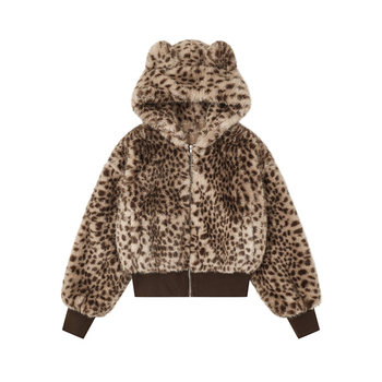 Özel Logo baskı Vintage kedi kulak leopar baskı bulanık ceket 2025 kış koleksiyonu boy kalınlaşmış üst Unisex